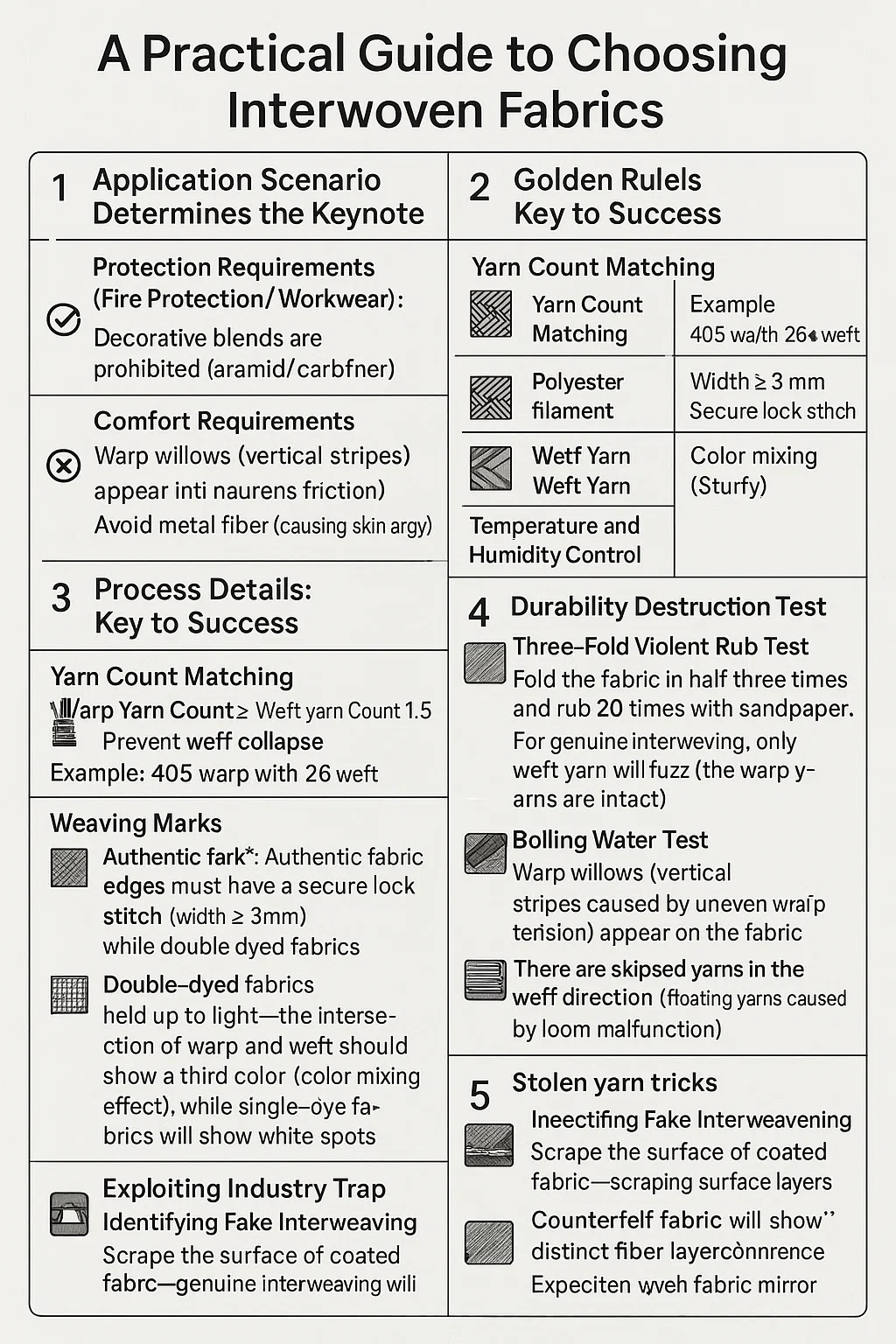 Truques com fios roubados: Vendedores inescrupulosos reduzem a densidade do fio de urdidura (por exemplo, nominalmente 120 fios/polegada, mas medido em <100 fios/polegada). Isso requer contar com um espelho de tecido.