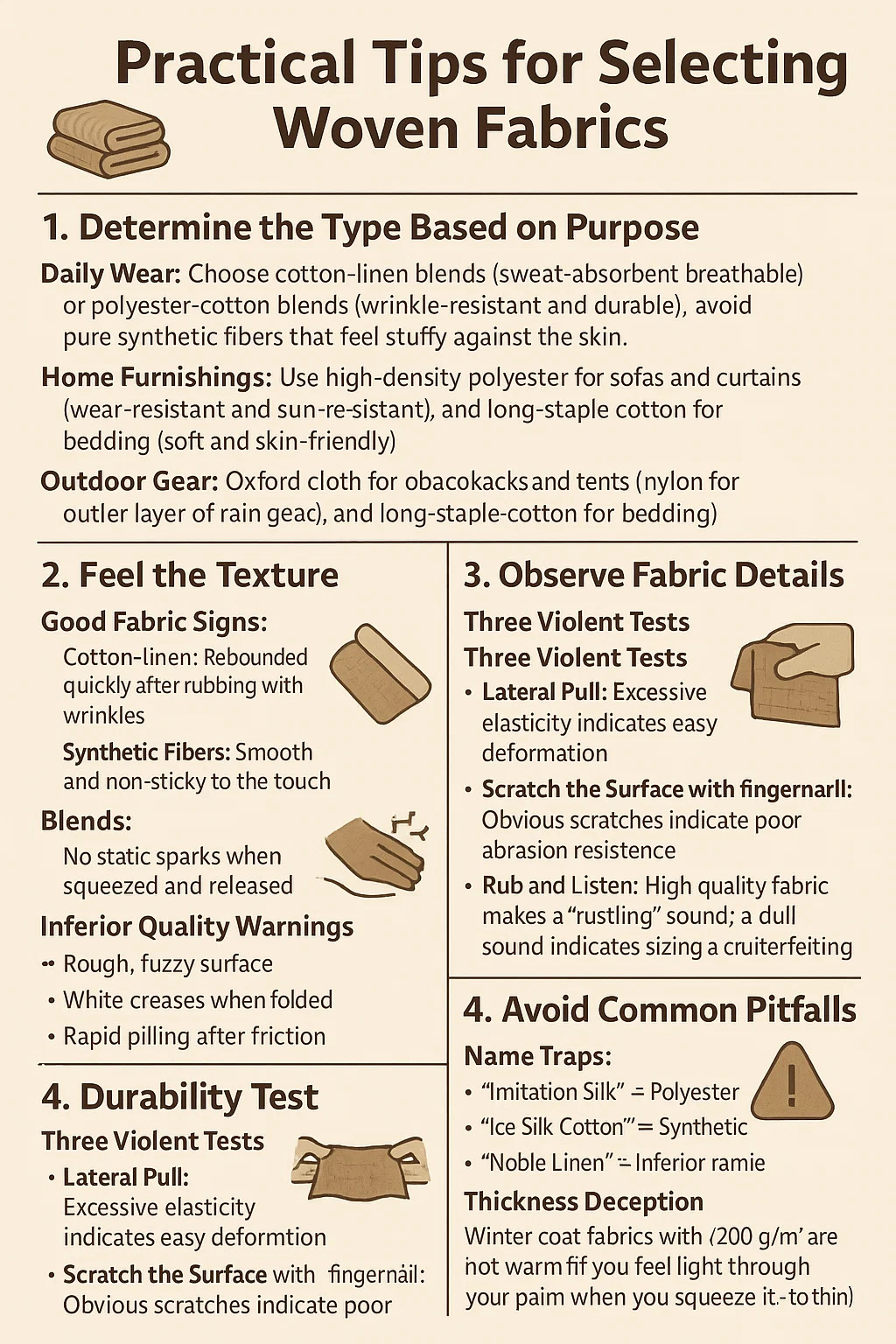 Uso diário: Escolha misturas de algodão e linho (absorventes de suor e respiráveis) ou misturas de poliéster e algodão (resistentes a rugas e duráveis), evitando fibras sintéticas puras que ficam abafadas na pele.