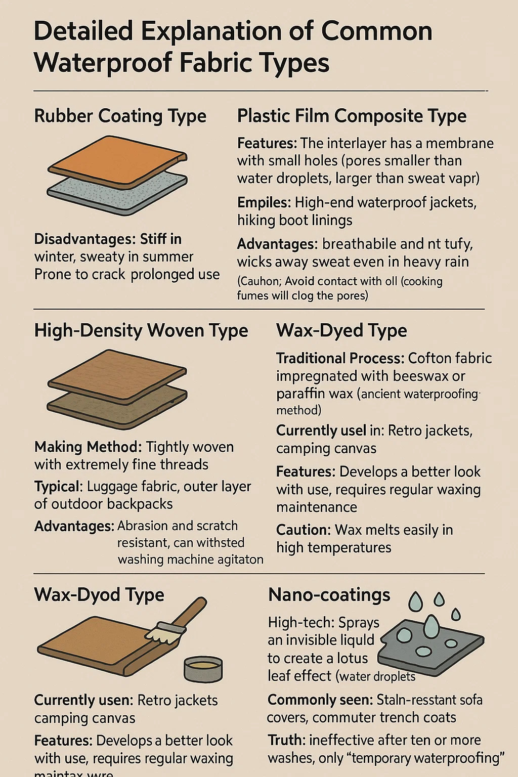 Características: Como se tivesse uma camada de borracha no tecido, a água não consegue penetrar, mas fica abafada.